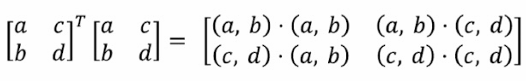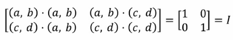 a,b,c,d로 구성된 직교행렬을 Q로 지정하면 열벡터와 행벡터를 구성하는 (a,b) , (b,d) , (a,c) , (c,d)의 크기는 1이고 (a,b)와 (c,d)는 서로 직교합니다.