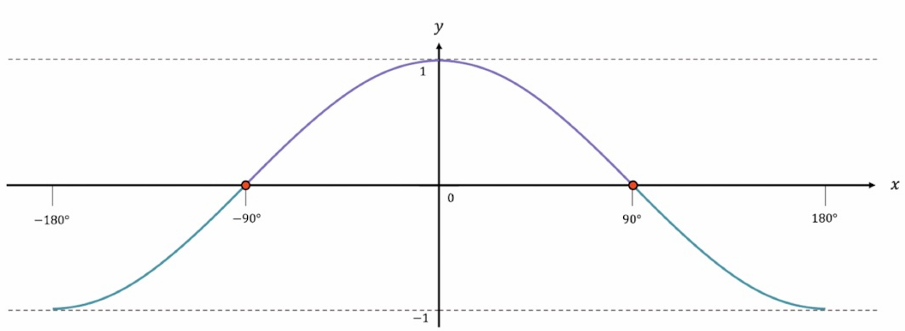 해당 범위에서는 각이 작을수록 cos함수의 값은 반대로 커지는것을 알 수 있습니다.