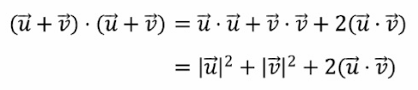같은 벡터를 내적하면 벡터 크기의 제곱이 되므로 이를 활용해 내적을 전개해봅시다.