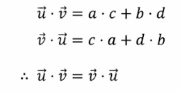 내적은 스칼라의 곱셈과 덧셈으로 구성되어 있으므로 교환법칙이 성립합니다.