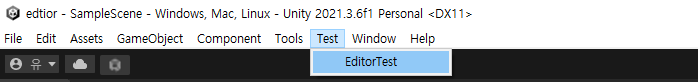 Test창에서 EditorTest를 클릭 시 함수가 실행되도록 합니다