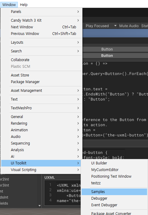 uxml를 넣는 방법은 맨 처음 창이 열리면 실행되는 함수 CreateGUI에서 uxml를 불러옵니다